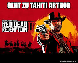 Tahiti rdr2 meme. Red Dead Redemption 2 He Insists Scarf. In late 2018 memes featuring the character were widely circulated in the gaming community often based on his memorable quotes such as Arthur I have a plan We just need money and Tahiti. Red Dead Redemption 2 is an epic tale of life in Americas unforgiving heartland.